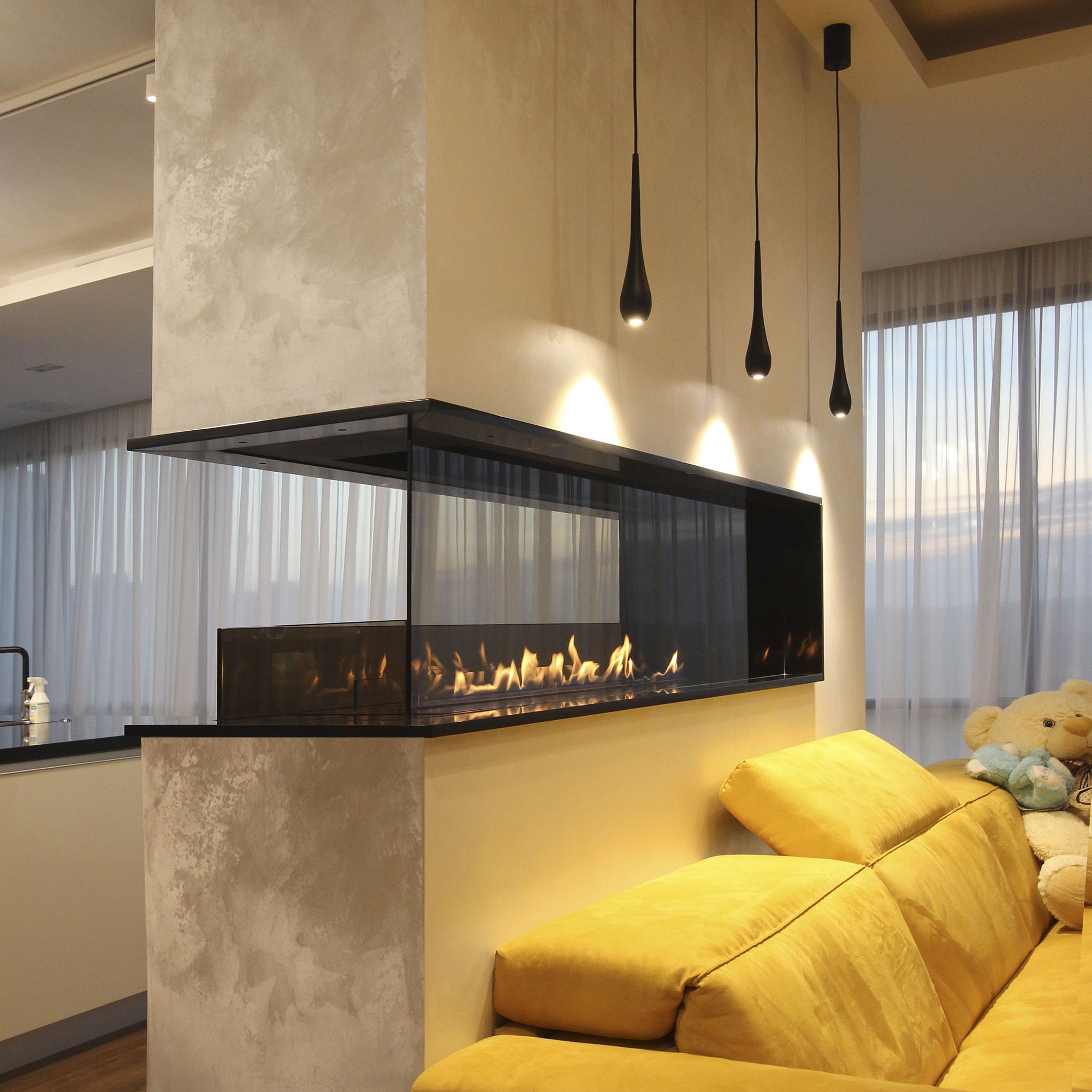 - Индикация уровня топлива и высоты пламени, отображаемая на дисплее управления биокамином или на смартфоне.