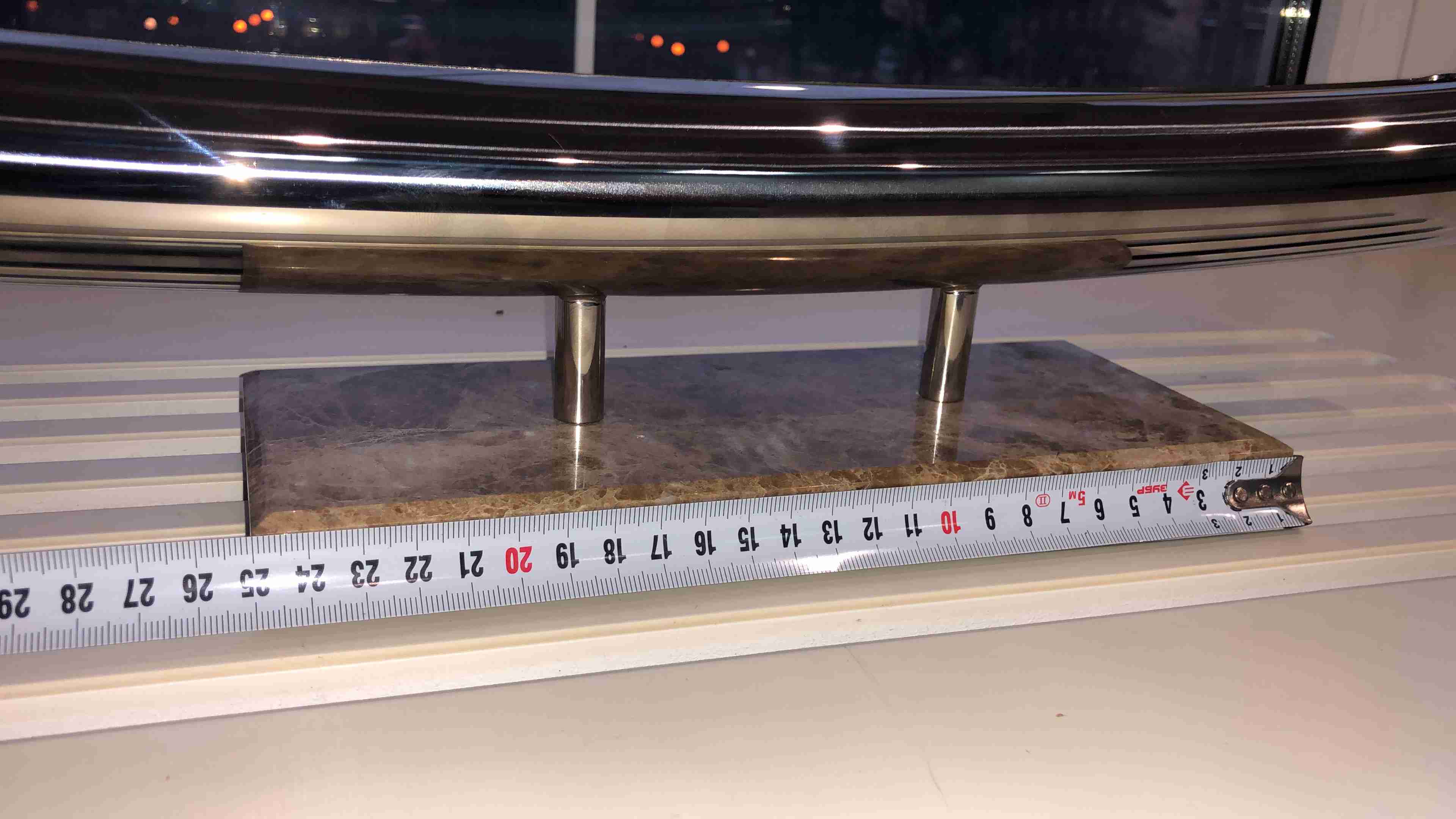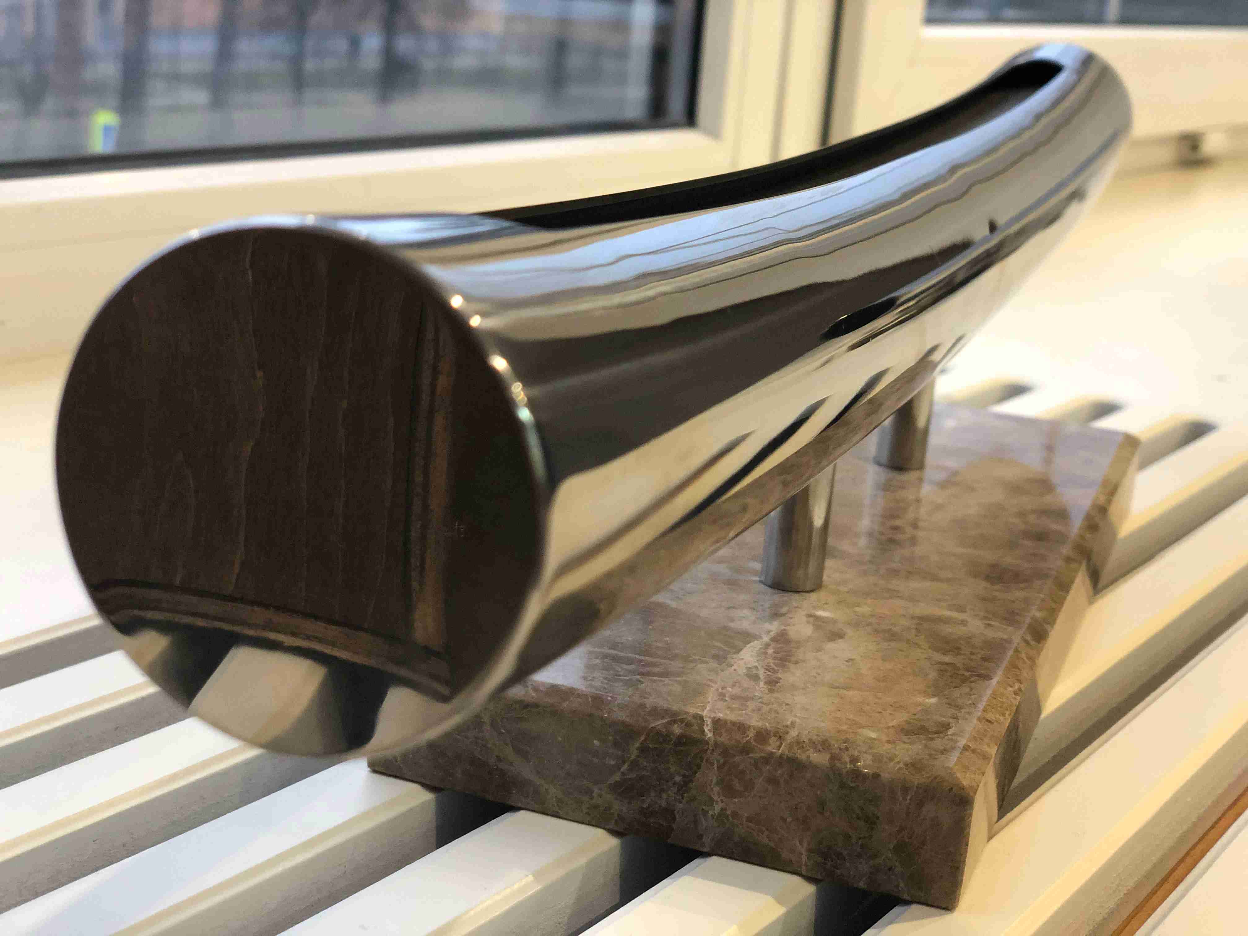 Материалы: нержавеющая сталь, подставка из мрамораГабариты: 500 х 110 х 100 мм.