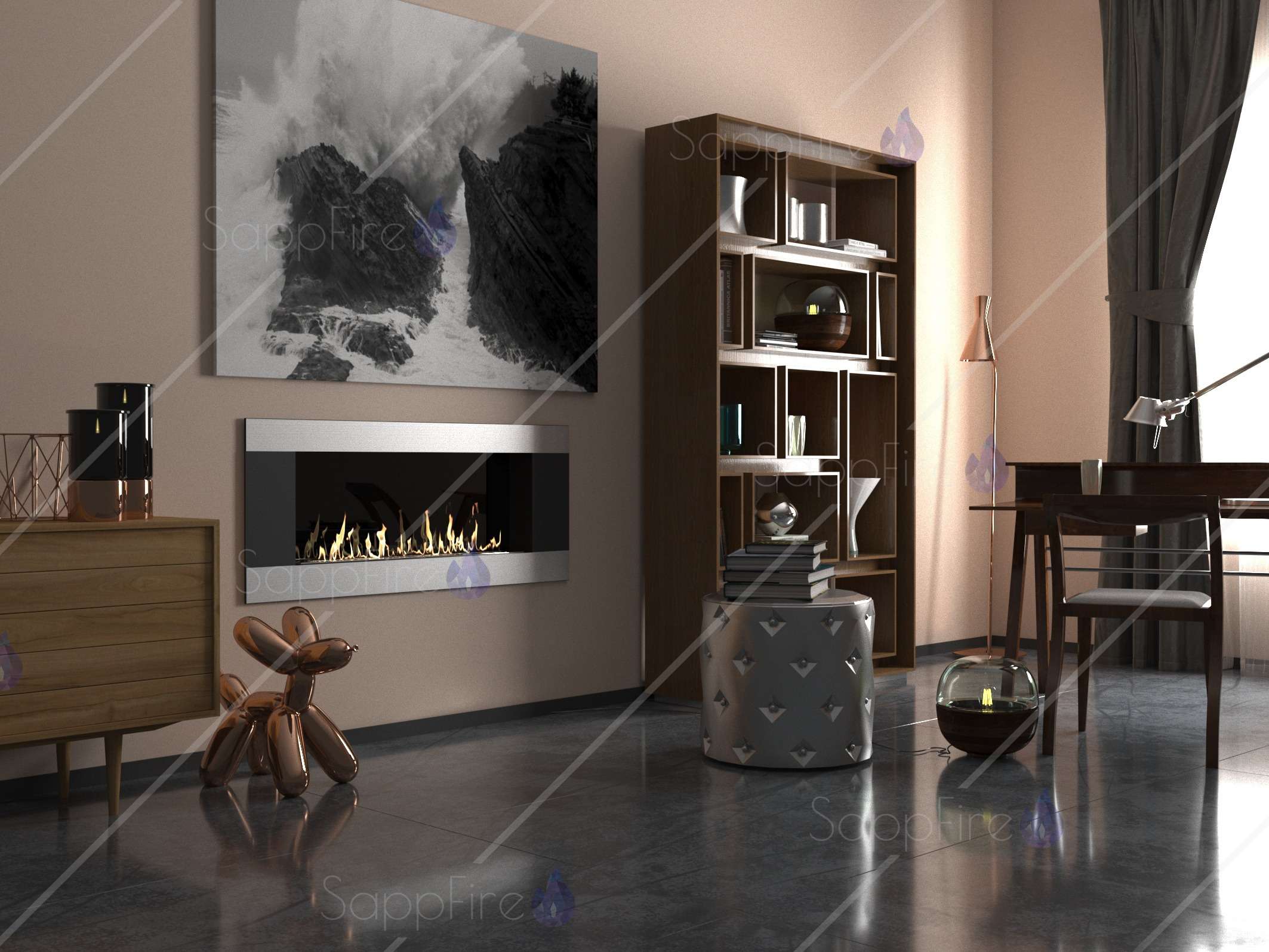 Встраиваемый биокамин / очаг Mercury Horizontal 900 (SappFire)