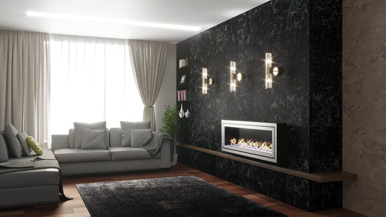 Декоративное стекло — крепится на всю заднюю стенку очага. За счет своего зеркального отражения, пламя визуально становится в 2 раза больше и кажется, что камин горит еще ярче.