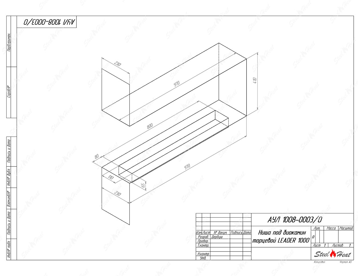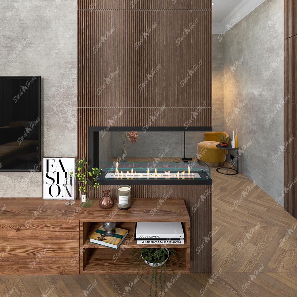 Встраиваемый Биокамин торцевой SteelHeat Leader 1000предназначен для встраивания в глухие ниши из гипсокартона, кирпича, пеноблоков, бетона.