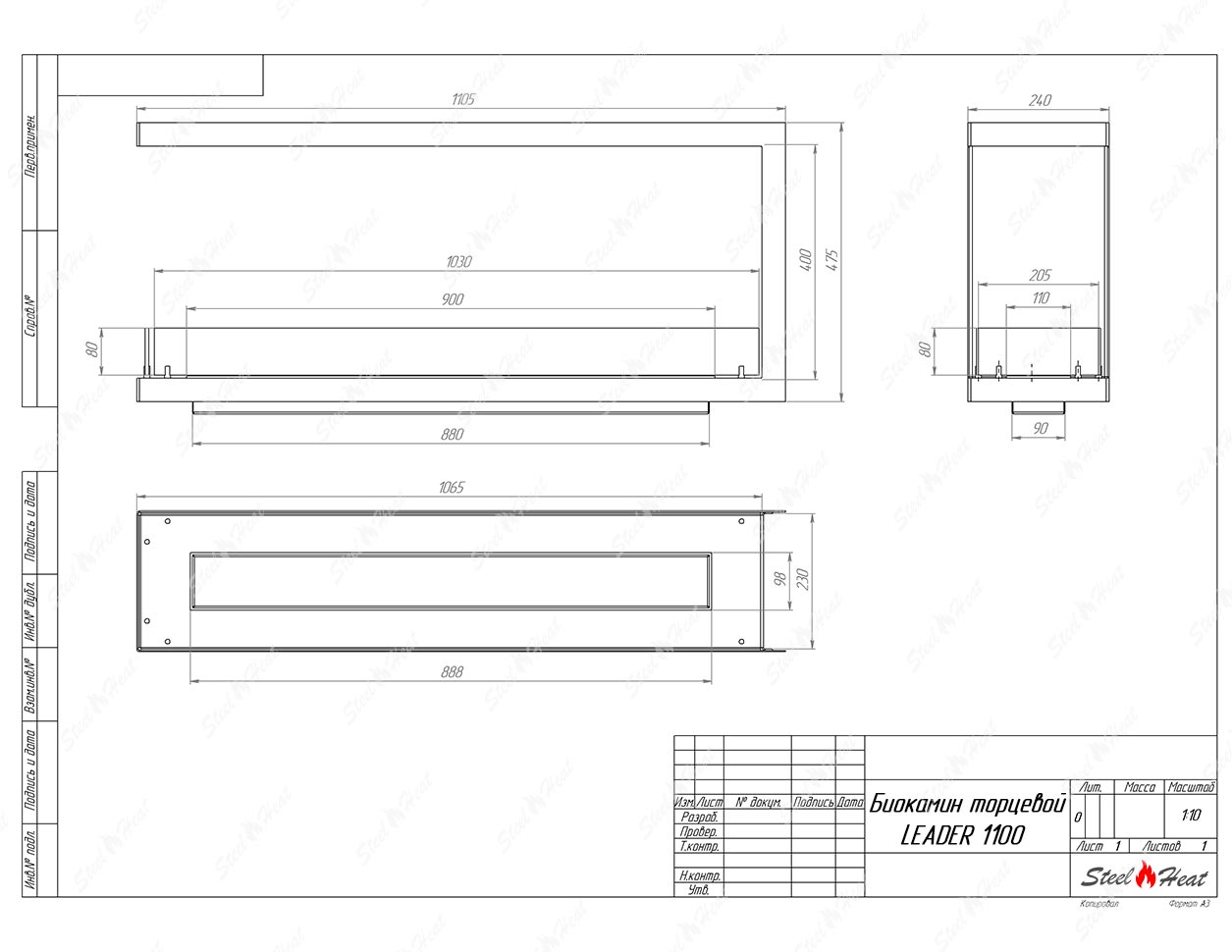 Встраиваемый Биокамин торцевой SteelHeat Leader 1100 предназначен для встраивания в глухие ниши из гипсокартона, кирпича, пеноблоков, бетона.
