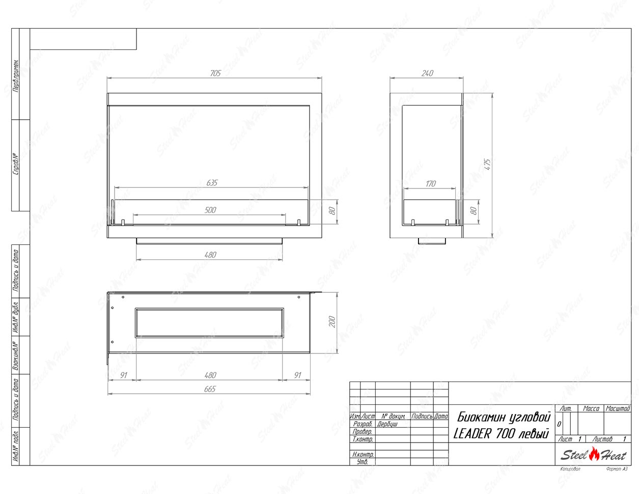 Встраиваемый Биокамин угловой SteelHeat Leader 700 левый предназначен для встраивания в глухие ниши из гипсокартона, кирпича, пеноблоков, бетона.