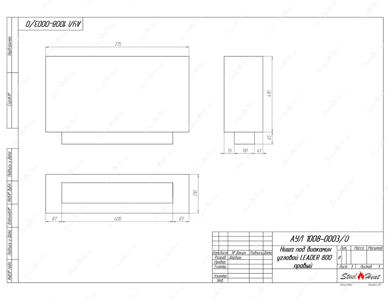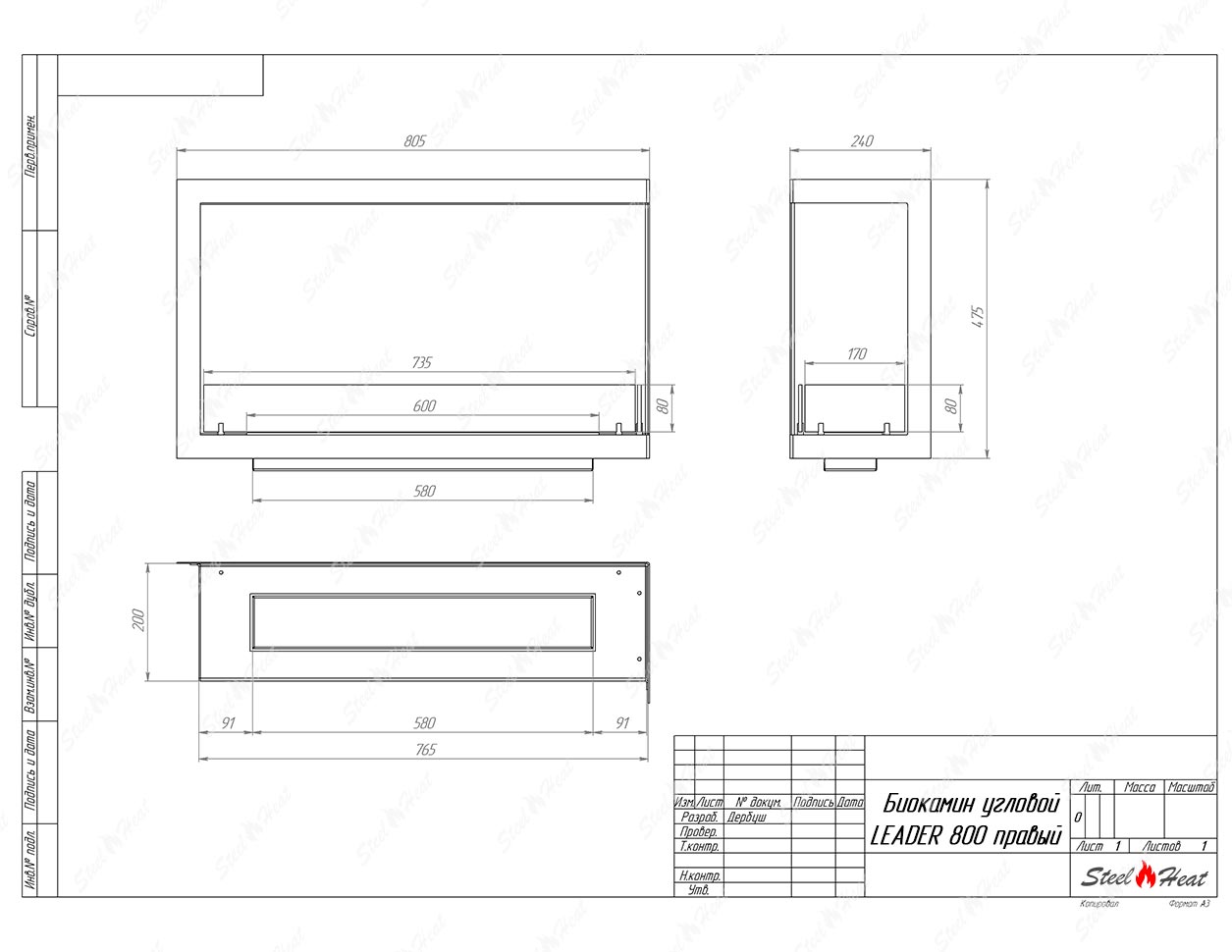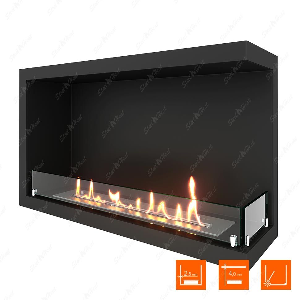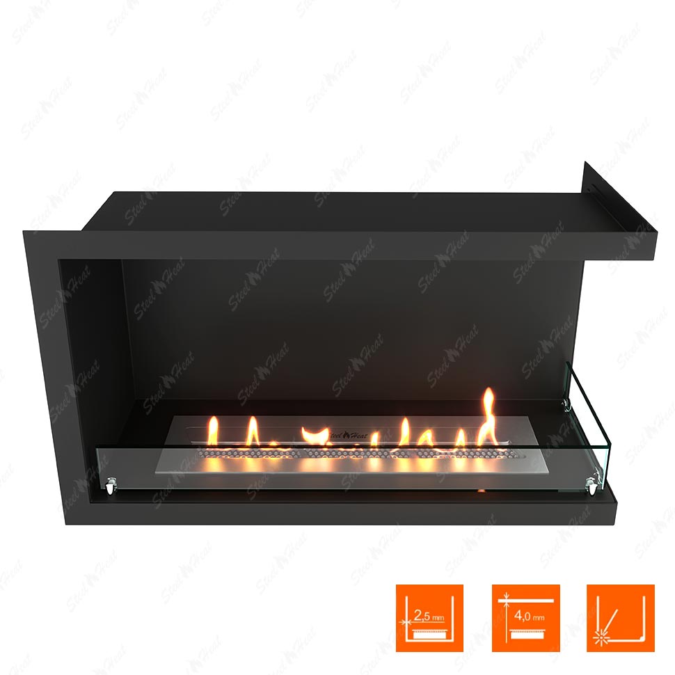 Встраиваемый Биокамин угловой SteelHeat Leader 800 правый предназначен для встраивания в глухие ниши из гипсокартона, кирпича, пеноблоков, бетона.