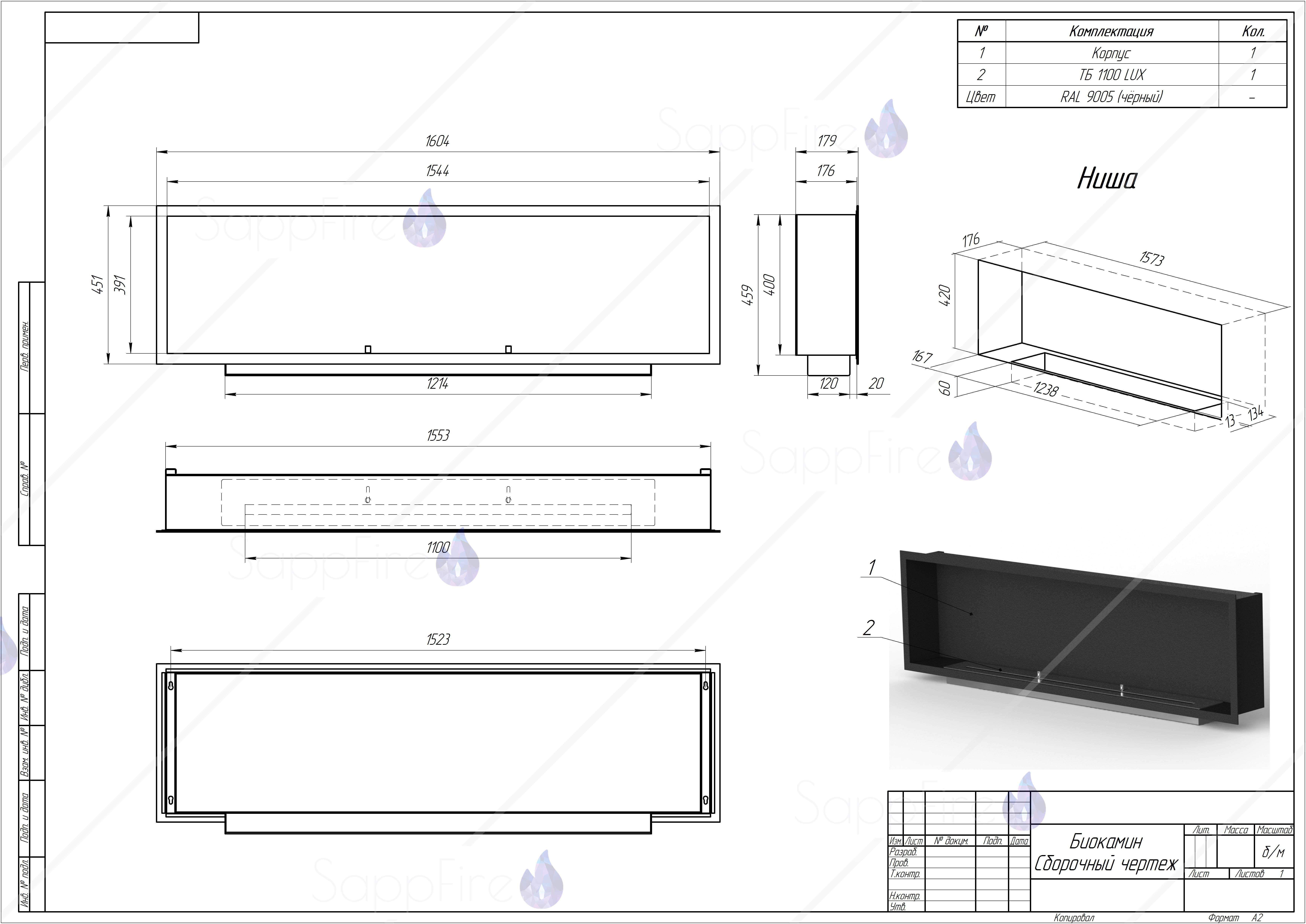 Встраиваемый биокамин / очаг Venera 1600 (SappFire)
