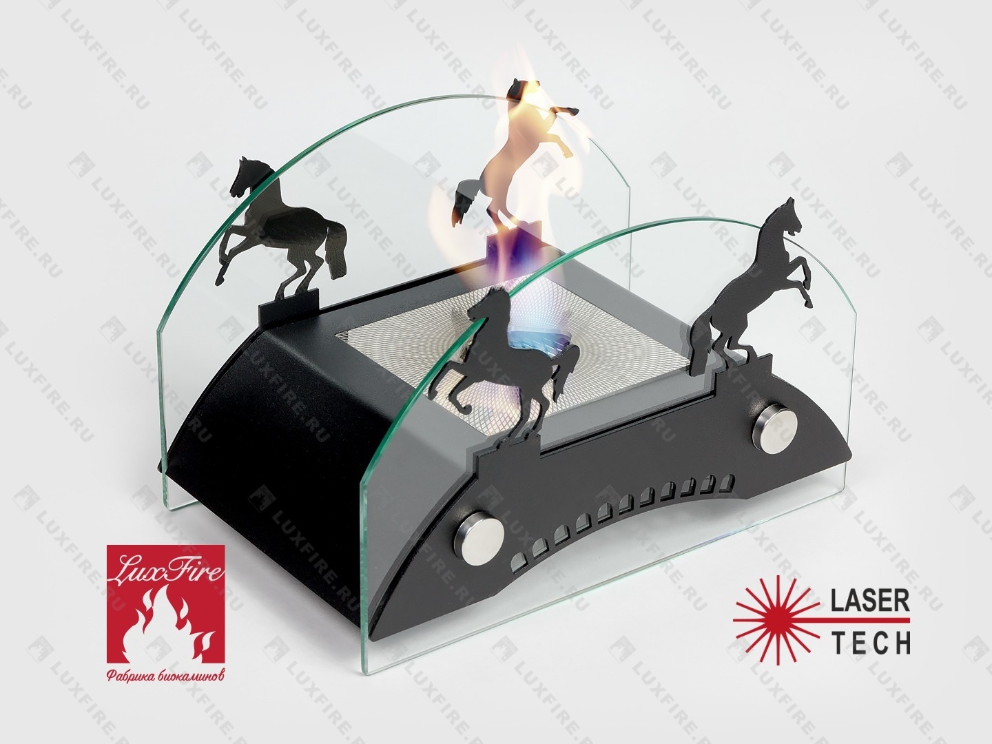 Представляет собой биокамин, который создан по мотивам мостов дореволюционной России середины ХIX-начала XX века и состоит из металлического корпуса с топливным блоком Lux Fire 100-1 огражденным с двух сторон скругленными защитными стеклами на дистанционных держателях и декоративными металлическими накладками в виде «Коней»