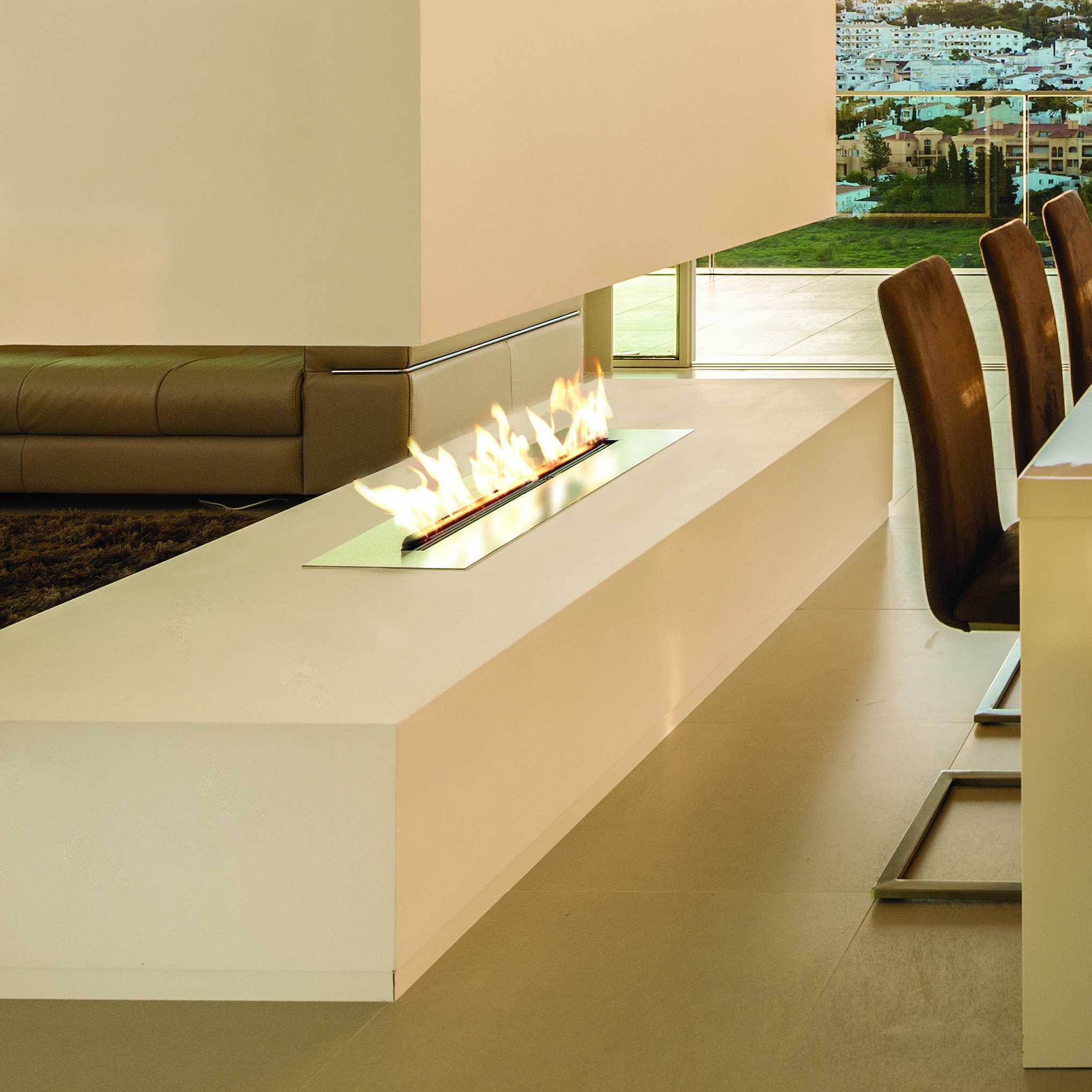 - Индикация уровня топлива и высоты пламени, отображаемая на дисплее управления биокамином или на смартфоне.