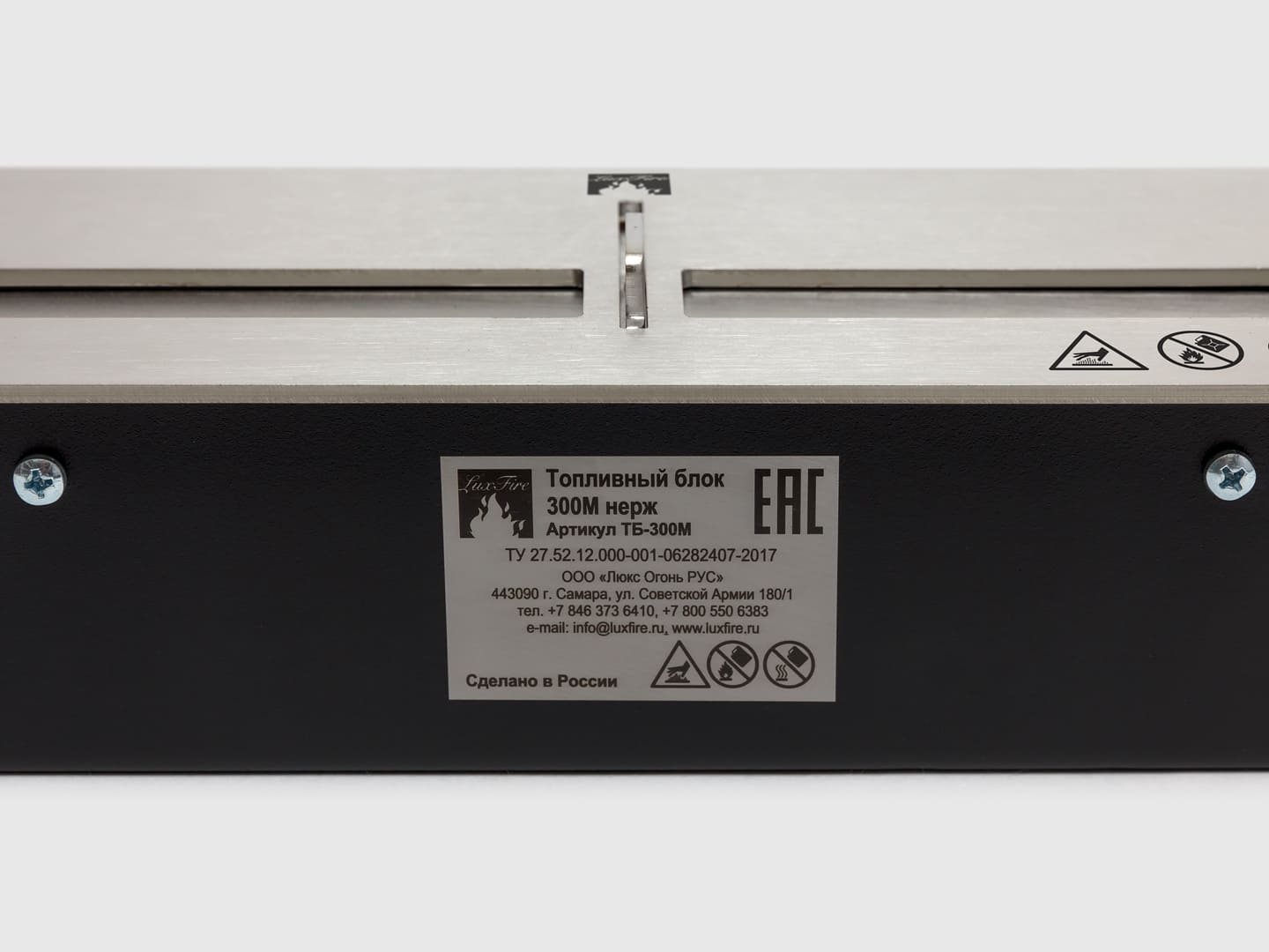 Особенность: Блок оснащен встроенным пламегасителем, позволяющим регулировать высоту пламени и удобную раскладку керамических дров. Имеет двойной корпус.
