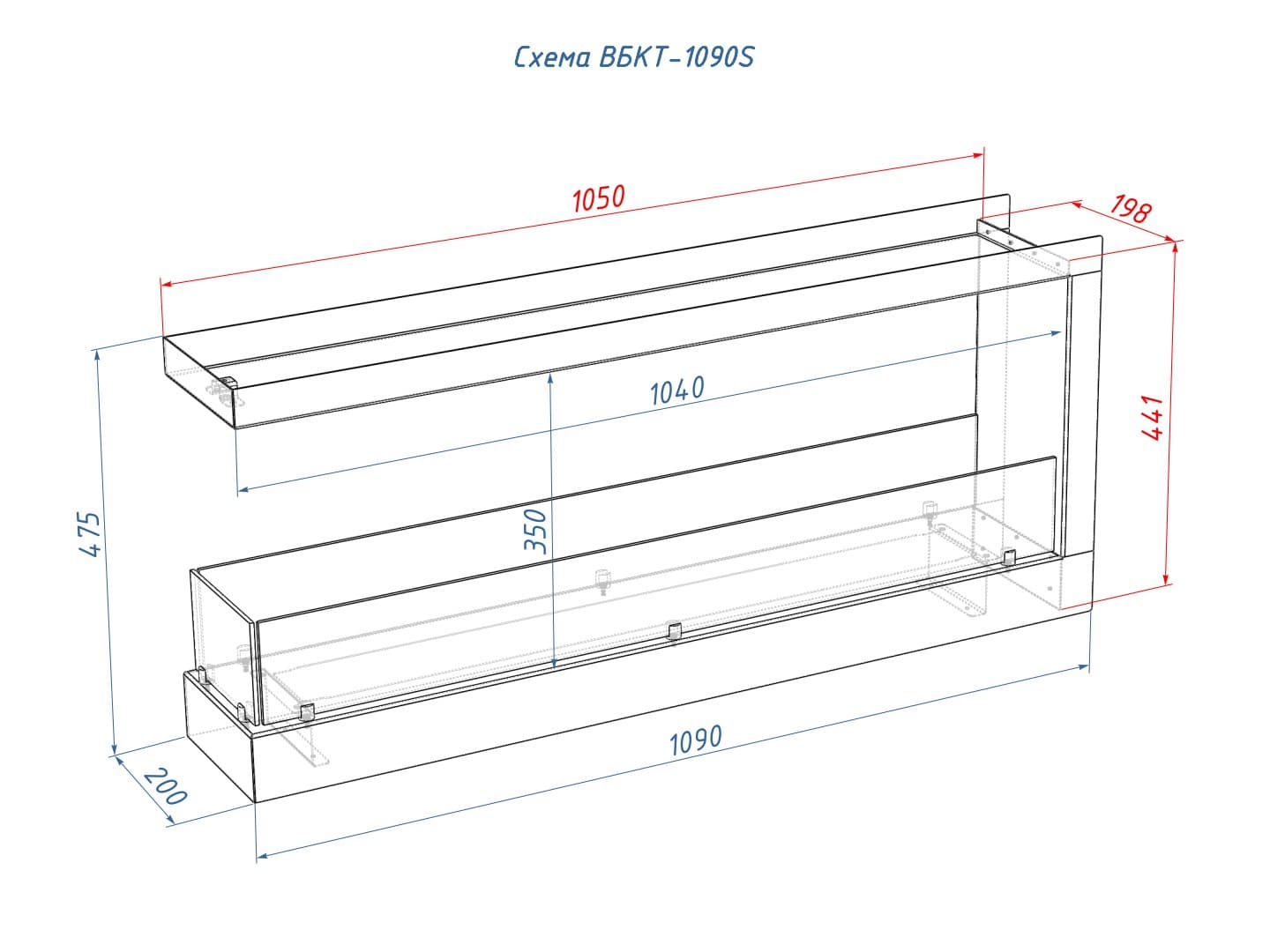 Описание встраиваемого торцевого биокамина Lux Fire Торцевой 1090 S