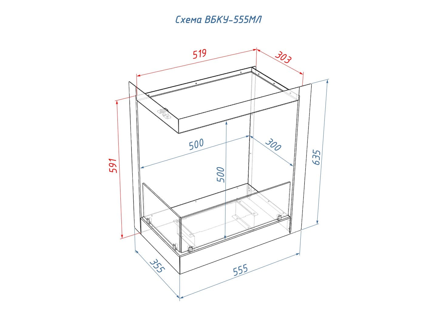 Описание встраиваемого углового биокамина Lux Fire 555 M (левый угол)