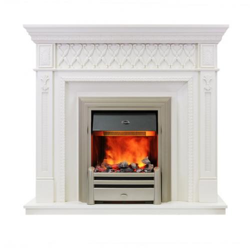 Каминокомплект «Alexandria», оборудованный современным паровым очагом «Opti-Myst Chesford», от производителя Dimplex идеально дополнит помещение, выполненное в любых тонах. Нейтральный светлый оттенок позволит как подчеркнуть романтическую обстановку помещения, так и создать определенный акцент в интерьере, где преобладают темные оттенки. Что касается габаритов конструкции, то камин не отличается компактностью. Но за счет расцветки портала это абсолютно не бросается в глаза.