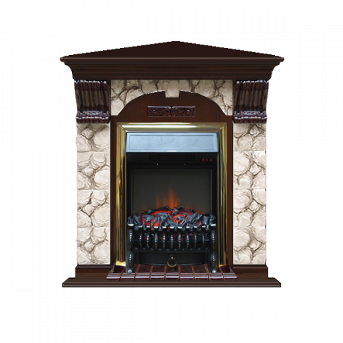 Электрический камин изготовлен из МДФ со шпоном натурального дуба, облицовка - искусственным камнем серии Карелия, ручная работа.
