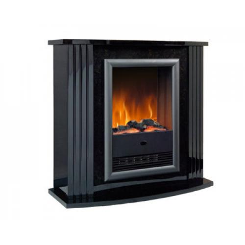- Портал (МДФ/черный лакированный ламинат, вставка с эффектом черного мрамора) со встроенным очагом Viotta
